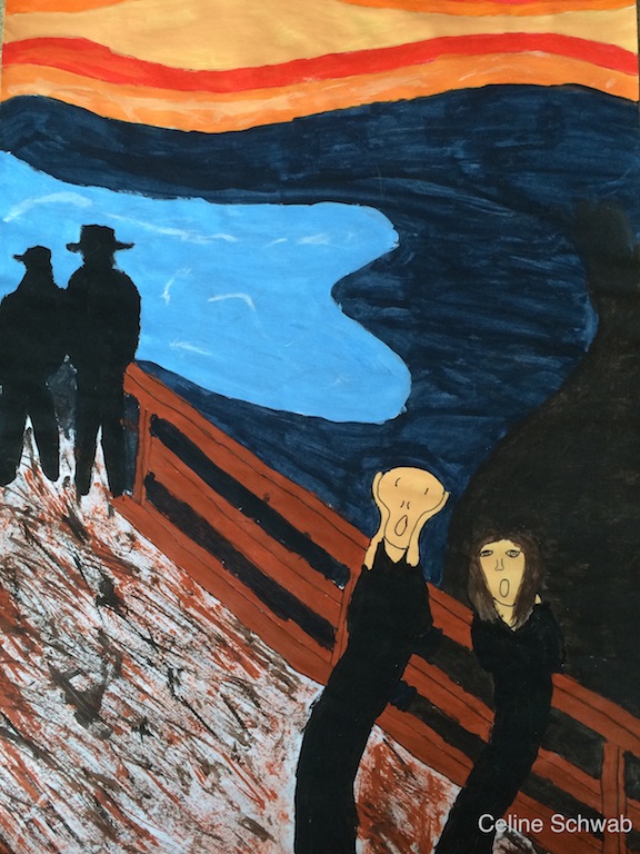 Im Kunstunterricht der Klasse 10a erhielten die Schüler die Gelegenheit sich selbst in ein Werk eines bekannten Malers zu integrieren. Zunächst verschafften sich einige Schüler einen Überblick über die moderne Kunst – andere hatten schon klare Vorstellungen von Künstler und Werk. Es wurde mit den unterschiedlichsten Materialien gearbeitet – einige entschieden sich nach ihren persönlichen Vorlieben, andere wagten sich an Neues. Spannend wurde es, als man sich selbst in das Bild integrieren sollte, entweder im jeweiligen Stil des Künstlers oder einer eigenen Idee folgend.