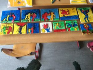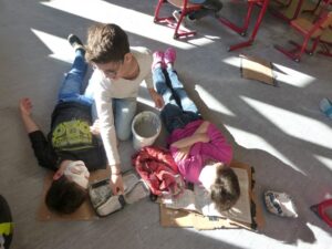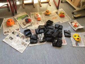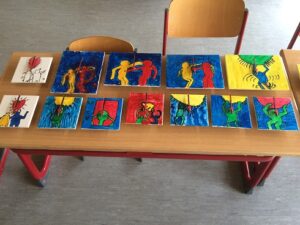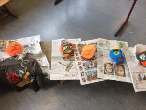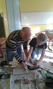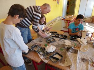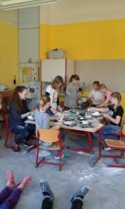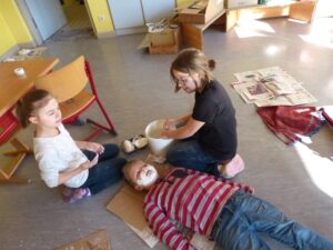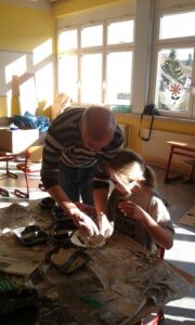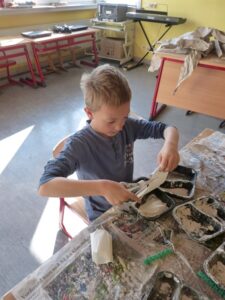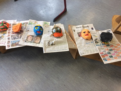 Ganz im Schaffensrausch befanden sich die Schülerinnen und Schüler der Grundschule Alf. Am zweiten Tag startete Aurelia Lohkämper eines ihrer Kunstprojekte. Im Rahmen ihres zweiwöchigen Praktikums arbeitet Aurelia in der Grundschule Alf. Dabei schaut sie nicht nur den erfahrenen Lehrern über die Schulter sondern schlüpft bei ihren Projekten selber in die Rolle einer Lehrperson. Da sie schon im zweiten Jahr das Wahlpflichtfach Kunst belegt hat, lag es nahe, künstlerisch zu arbeiten. Mit Unterstützung ihres Lehrers und eines Mitschülers konnten alle Grundschüler einen Gipsabdruck ihres Gesichts erstellen. Allen Beteiligten hat es großen Spaß gemacht. Besonders engagiert zeigten sich die Schüler der 4. Klasse, die als erste an der Reihe waren. Nachdem sie ihre Masken fertiggestellt hatten, halfen sie ihren jüngeren Mitschülern bei den Gipsabdrücken. In den nächsten Tagen werden die Gipsmasken nach eigenen Ideen bemalt und beklebt. Der Phantasie sind dabei keine Grenzen gesetzt. Da beim Gipsen schon ein Metall-Kleiderbügel mit eingearbeitet worden war, konnten die Gesichter mit ausrangierten Kleidungsstücken auch noch einen Köper erhalten. Als zweites Projekt wird Aurelia Uhren gestalten, dafür werden vorbereitete Fliesen mit Porzellanfarben bemalt. Die fertigen Kunstwerke erhalten dann ein Uhrwerk und die dazu passenden Zeiger. Wir wünschen Aurelia weiterhin viel Freude bei der Durchführung und Beendigung ihrer Projekte.