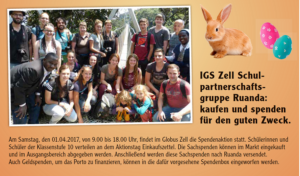 « zurückIGS Schulpartnerschaftsgruppe Globusaktion („kaufen und spenden“) am 1.4.2017 verfasst am 4. April 2017 Erfolgreich! 4 Kisten (mit je 20kg) konnten verschickt werden.
