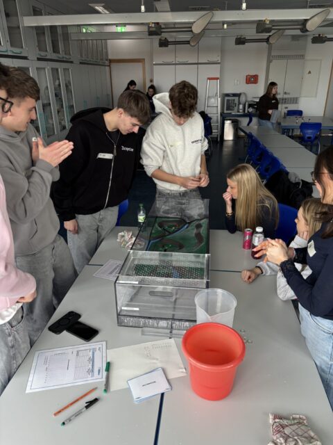 Der Erdkunde-Leistungskurs der Stufe 11 besuchte am 23.01.2026 das „BioGeoLab“ der Universität Trier, um an einem Forschungs-Lernprojekt zum Thema „Hochwasser- und Starkregenereignisse“ teilzunehmen. Vor Ort sollten mit praktischem Schwerpunkt Unterrichtsinhalte vertieft und neue Erkenntnisse gewonnen werden. Das Projekt bestand aus mehreren Stationen; an jeder Station wurde von einer Kleingruppe des Leistungskurses ein anderer Aspekt untersucht: die Ursachen (Klimawandelprozesse, starke Regenfälle, der Einfluss des Menschen durch Flächenversiegelung oder der Veränderung von Flusslandschaften), Auswirkungen und Schutzmaßnahmen gegen Hochwasser. Durch Modelle, selbst durchgeführte Experimente und Erklärungen konnten wir die Inhalte gut nachvollziehen, da sie verständlicher und anschaulicher wurden. Insgesamt war der Besuch des „BioGeoLab“ vor dem Hintergrund der Hochwassergefahr in unserer Region sehr interessant und lehrreich.