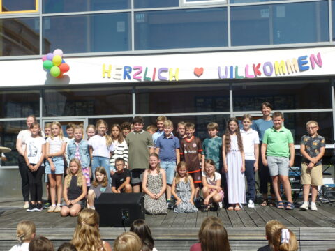 Am Dienstag, 19.08.2025, fand bei strahlendem Sonnenschein die Einschulungsfeier für die neuen Fünftklässler im Atrium der IGS statt. Schulleiterin Frau Raetz, Stufenleiterin Frau Wirtz, Frau Salzmann als Vorsitzende des Fördervereins sowie die Klassenleitungen hießen alle 112 Schülerinnen und Schüler und deren Eltern in der Schulgemeinschaft der IGS Zell herzlich willkommen. Eröffnet wurde die Feier mit einem Vorspiel der Schulband und einer Tanz- und Gesangdarbietung der Gäste aus der ruandischen Partnerschule. Der sich anschließende „spirituelle Impuls“ der Religionslehrer*innen stand dieses Jahr unter dem Motto „Ich bin ich- das ist perfekt!“. „Jedes Kind ist einmalig, keiner kann dabei alles, aber jeder kann etwas und ist in der Schule ein wichtiger Teil der Klassengemeinschaft. Keiner braucht Angst haben, denn in unserer Verschiedenheit sind wir perfekt“ – so lautete die Botschaft, die den Kindern vermittelt wurde. Ein kleiner Spiegel für jedes Kind und ein Kuscheltier als Maskottchen für jede Klasse soll die Schülerinnen und Schüler noch lange an den Tag ihrer Einschulung an der IGS Zell erinnern.