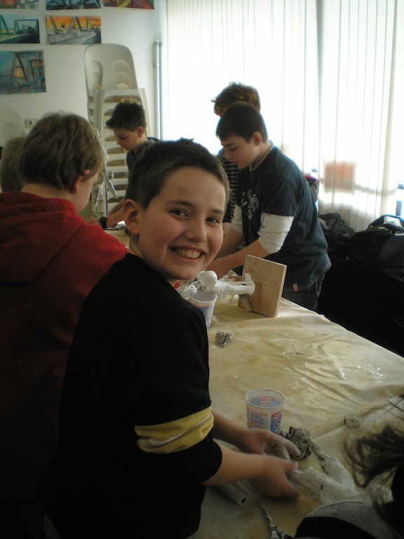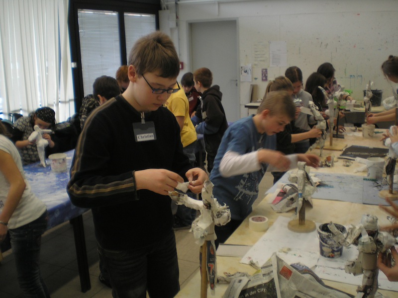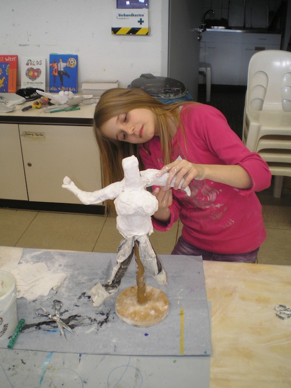 „Wie fühlt sich ein blauer Tag an?“, „Habt ihr schon mal einen schwarzen Tag erlebt?“. Diesen Fragen gingen die Kinder zunächst in der Museumsschule nach, bevor sie sich einige ausgewählte Werke diverser Künstler im Museum Ludwig anschauten. Mit Hilfe der Museumspädagogin wurde den Kindern die Möglichkeit gegeben, sich die Kunstwerke und die Intention des jeweiligen Künstlers zu erschließen. Nach dieser theoretischen Einführung konnte es anschließend in den Räumen der Museumsschule endlich mit der praktischen Arbeit losgehen. Motiviert und mit Feuereifer begannen die Jungen und Mädchen nach der theoretischen Einführung ihre eigene „Nana“ praktisch im Stil der Niki de Saint Phalle aus Zeitungspapier und Gips herzustellen. Hierbei entstanden ganz unterschiedliche Figuren – von elegant bis ausgefallen.
