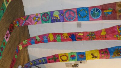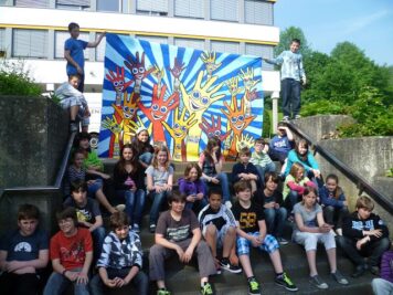 Klasse 5d gestaltet Transparent für die Partnerschule in Ruanda Mit Stofffarben und Acrylfarben gestaltete die Klasse 5d dieses fröhliche und farbenfrohe Transparent. Der Entwurf wurde mit Hilfe eines Overheadprojektors auf den großen Stoff übertragen und anschließend die Klassenfotos aller Klassen mit Transparentfolie aufgebügelt. Als letztes wurde das Motiv im Kunstunterricht ausgemalt. Herr Richerzhagen wird dies […]