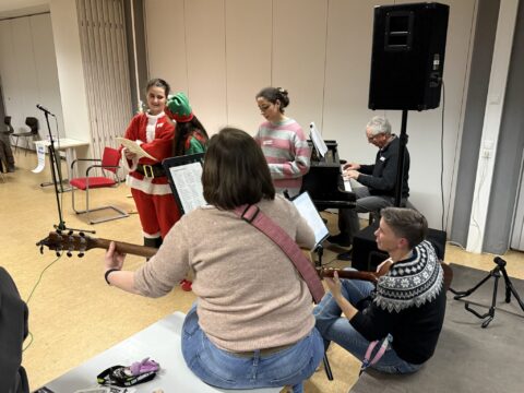 Nach einer kurzen Begrüßung durften unsere Gäste direkt selbst aktiv werden, beim gemeinsamen Kekse dekorieren wurde viel geredet und gelacht. Anschließend haben wir zusammen mit unseren Gästen gesungen. Beim Weihnachtsbingo herrschte fröhliches Treiben. Danach wurde von einer Schülerin unserer Klasse eine Weihnachtsgeschichte vorgelesen, was für einen ruhigen und besinnlichen Moment sorgte. Zwischen den Programmen gab es ein sehr großes Buffet mit belegten Brötchen, Kaffee und Kuchen. Für die weihnachtliche Atmosphäre spielte eine Schülerin ruhige, weihnachtliche Musik auf einem Klavier.