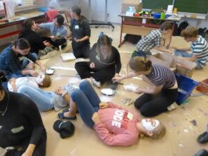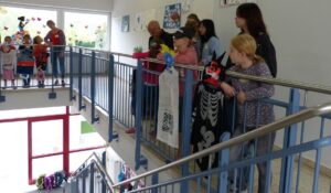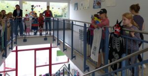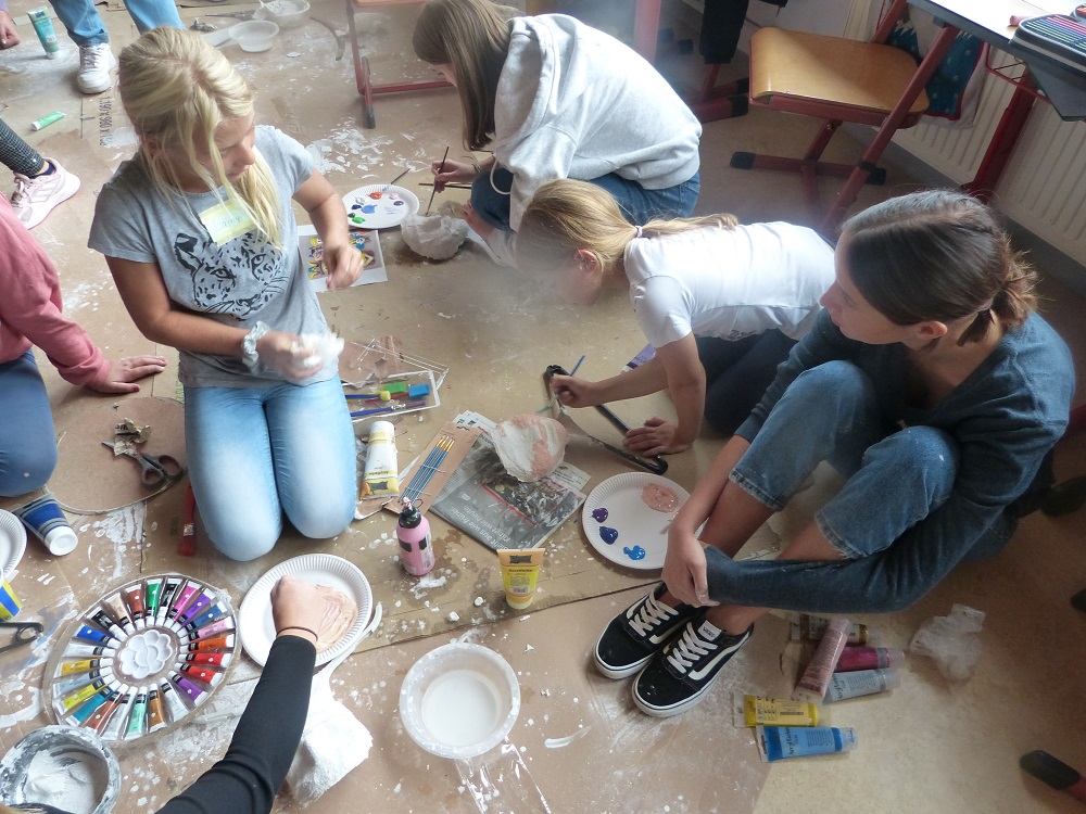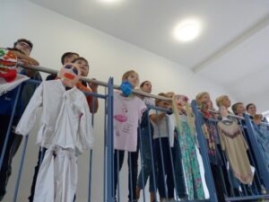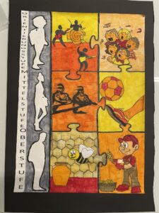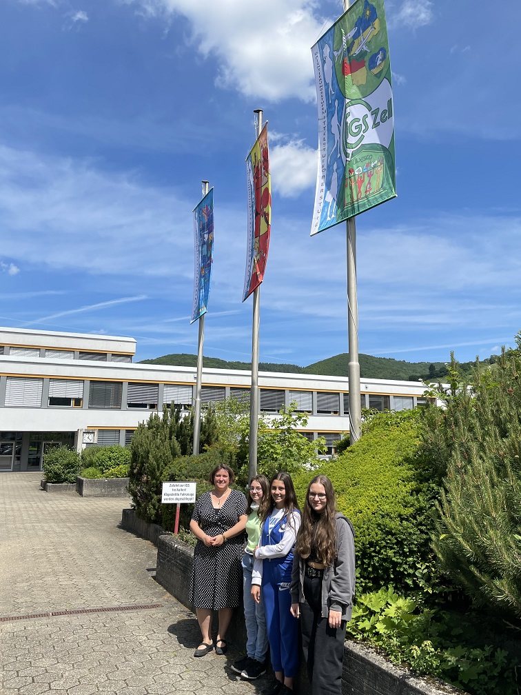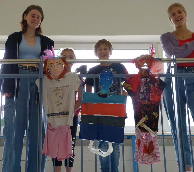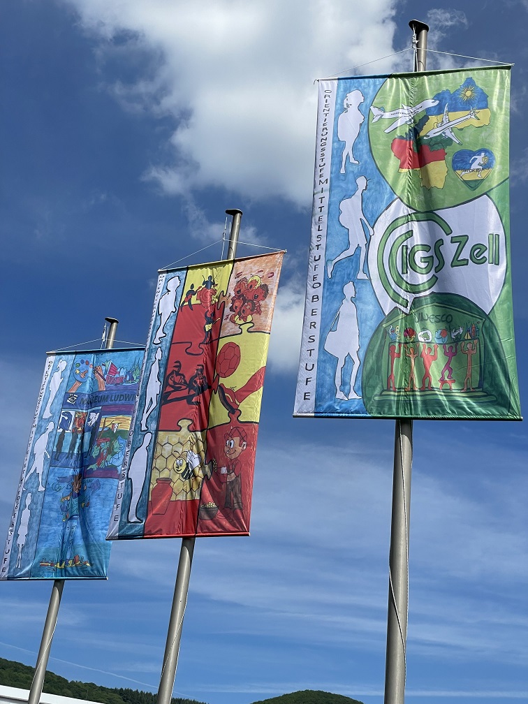 2022 Dafür gestalten Schüler der Klasse 7b, Wahlpflichtfach Kunst u. Handwerk (Klassenstufe 8) und Grundkurs 11 Balifahnen.