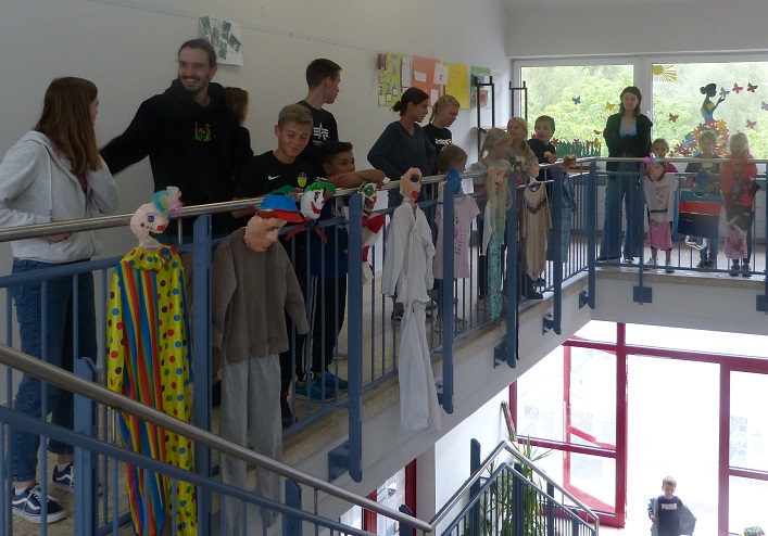 wir haben die schönen Balifahnen, die die Schüler gefertigt haben in der Stadthalle arrangiert. Leider ging es nicht mit den Stäben, aber ich denke wir haben Sie auch anders schön in Szene gesetzt. Hab Ihnen ein paar Fotos beigefügt.