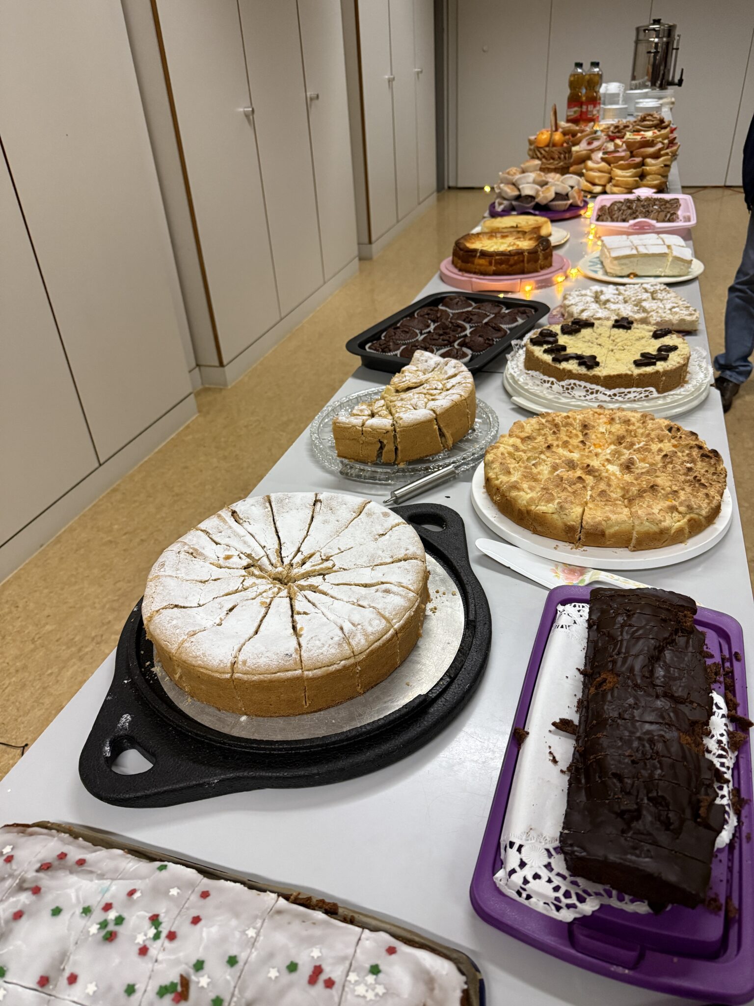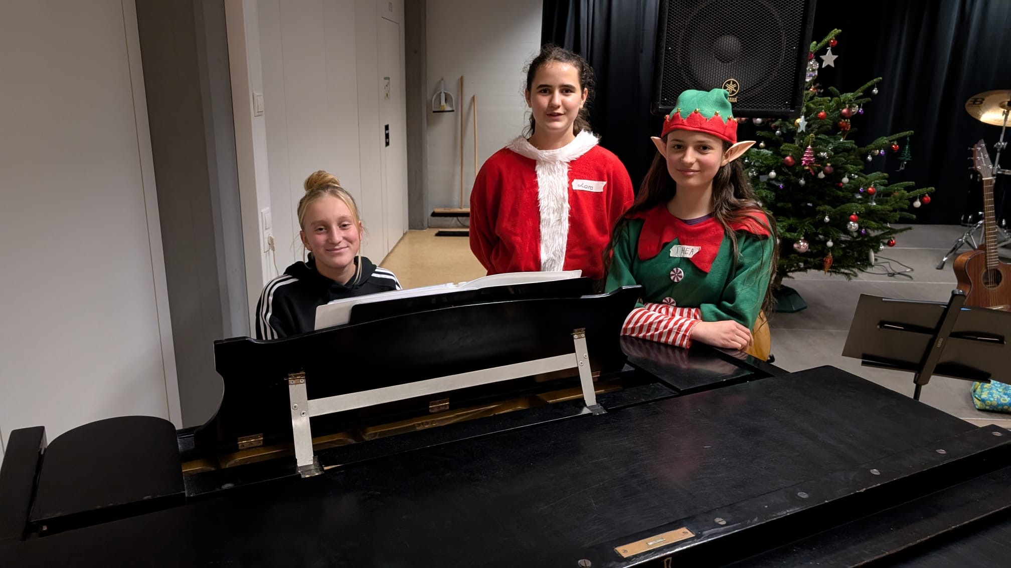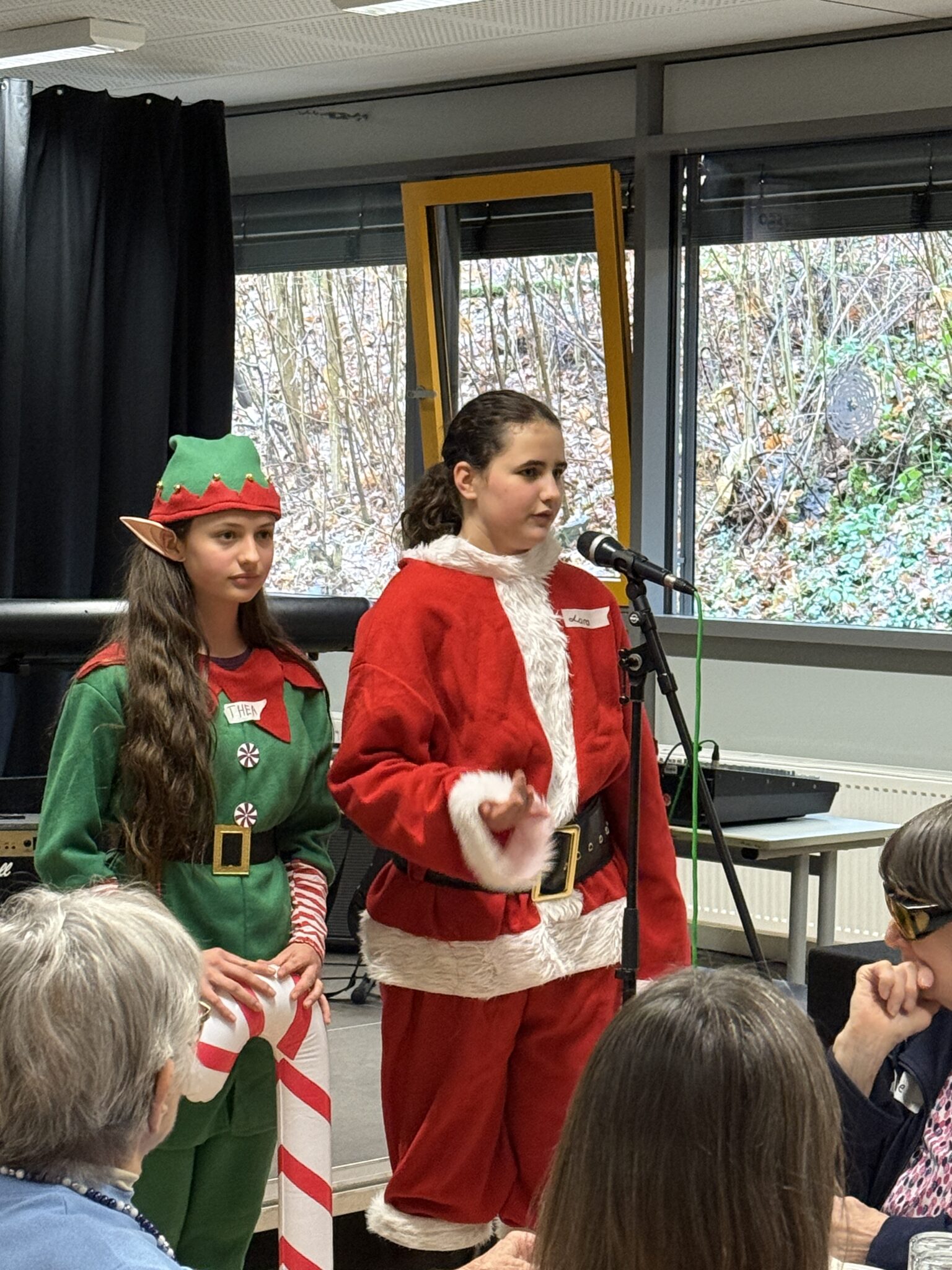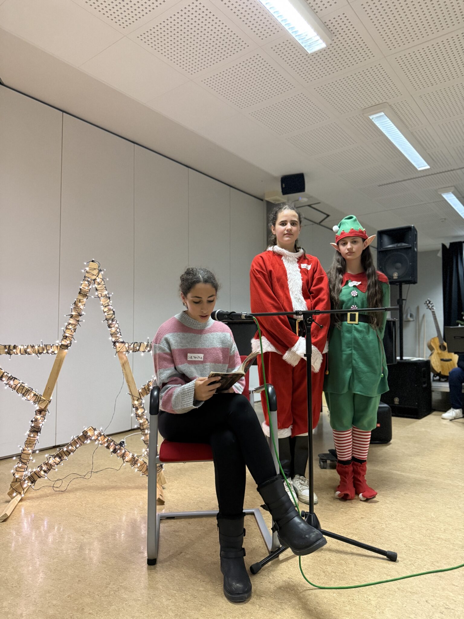 Nach einer kurzen Begrüßung durften unsere Gäste direkt selbst aktiv werden, beim gemeinsamen Kekse dekorieren wurde viel geredet und gelacht. Anschließend haben wir zusammen mit unseren Gästen gesungen. Beim Weihnachtsbingo herrschte fröhliches Treiben. Danach wurde von einer Schülerin unserer Klasse eine Weihnachtsgeschichte vorgelesen, was für einen ruhigen und besinnlichen Moment sorgte. Zwischen den Programmen gab es ein sehr großes Buffet mit belegten Brötchen, Kaffee und Kuchen. Für die weihnachtliche Atmosphäre spielte eine Schülerin ruhige, weihnachtliche Musik auf einem Klavier.