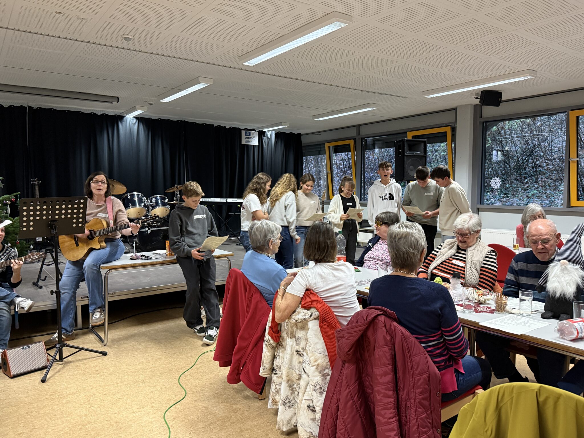 Am vergangenen Freitag fand an der IGS Zell ein Seniorennachmittag für bis zu 40 Besucherinnen und Besucher ab 65 Jahren statt. Die Veranstaltung wurde von Schülerinnen und Schülern der Klasse 8c organisiert und sorgte für eine warme, weihnachtliche Atmosphäre.
