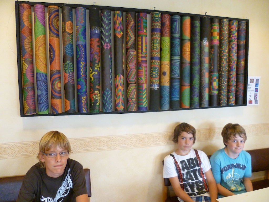 Die Klasse 7b hat in den letzten Wochen Metallvögel mit Mosaik gestaltet. In mühevoller Geduldsarbeit sind diese Meisterwerke im Kunstunterricht entstanden. Diese Gartenobjekte sind eine Zier für jede Außenanlage. Die Schülerinnen und Schüler bieten ihre Werke zum Verkauf an. Der Erlös soll für die bevorstehende Klassenfahrt nach Mittenwald verwendet werden. Die in Gelb-, Blau- und Rottönen gehaltenen Vögel sind zum Preis von 50,- € zu erwerben. Durch die hohen Materialkosten (Rohvogel aus Metall mit Laser ausgeschnitten und der teure Silikonkleber) kommt dieser stolze Preis zustande. Es soll natürlich auch noch ein Gewinn für die Klasse entstehen.