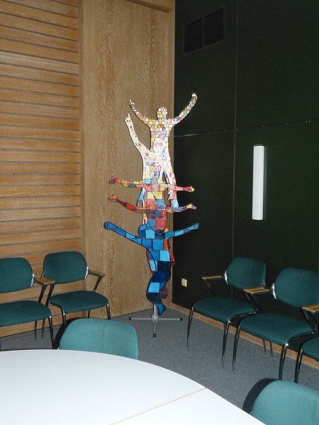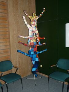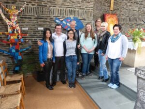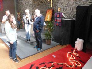 Die Tourist-Information Ediger-Eller leuchtet seit dem 29.März in warmen Gelb-orange-Tönen. Dafür haben die Schülerinnen und Schüler des Wahlpflichtfaches Kunst gesorgt. Sie haben Porträts von bekannten und verdienten Persönlichkeiten der Region gemalt. Meisterhaft haben die jungen Künstler die Gesichter im Stile der Pop-Art in Szene gesetzt. Wie in einer Ahnengalerie präsentiere sie sich in der Öffentlichkeit. Weiterhin sind Ätzradierungen zu bewundern, die die Calmontregion widerspiegeln. In ihren Drucken beweisen sie, dass sie auch diese schwierige und aufwendige Technik beherrschen. Die Idee für diese Ausstellung kam von Bärbel Pellio, die sich mit ihrer Bitte schon im letzten Schuljahr an die IGS gewandt hatte. Die Künstler des Wahlpflichtfachs kamen dem Wunsch gerne nach und erstellten ihre Kunstwerke schon zum Ende des letzten Schuljahres. Einige der Arbeiten wurden bereits auf dem Schuljubiläum in Form einer Kunstausstellung gezeigt. Weiterhin entstanden lebensgroße Plastiken aus Papiersäcken. Ideengeber für dieses Projekt waren Kunstwerke von Indios, die sie auf dem Markt in Mexiko-City präsentierten. Mit Hilfe der Fotos versuchte man, in ihrer Technik zu arbeiten. Stolz präsentierten die Schüler ihre Kunst bei der Ausstellungseröffnung am 30.März in den Räumen der Information. Die Ausstellung ist bis zum 1. Juni zu besuchen.