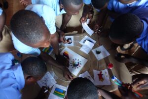 Inzwischen bin ich wieder in Gikonko. Auch nur zwei Wochen Abwesenheit hat einiges an Arbeit angehäuft, zudem ist Jahresabschluss. Aber wenn ich so die Zahlen Revue passieren lasse: Patientenzahlen, Geburten, Operationen, Besucher, Hausbauten, neue Bekanntschaften oder Freundschaften… dann war es ein gutes Jahr, an das ich mich dankbar erinnere. Es begann mit einem Super Skiurlaub in der Großfamilie, einmalige Pisten in der Lenzerheid, super Schnee und Sonne, abendliche Spielerunden und viel Erzählen, Heimaturlaub auf dem Kupferberg mit dem Wiedersehen mit vielen immer älter werdenden lieben Mitschwestern, Besuch bei Freunden. Wieder zurück in Gikonko durfte ich mich auf Besucher freuen in großer Zahl: Kollegen halfen im Op in der Neurochirurgen oder HNO, meine Cousinen brachten Ordnung in meinen Op-Vorrat, Besucher von der Mosel schenkten uns einen Arbeitstag und machten allerlei liegengebliebene Handwerksarbeiten, andere kamen als Besucher, für ein paar Stunden oder Tage, ich führte sie über die Hügel und zeigte ihnen, dass Rwanda mehr ist als das hypermoderne Convention-Centre in Kigali. Meine Armen freuten sich, dass so mancher ein neues Haus finanzierte oder auch nur ein paar Säcke Zement für den Verputz da ließ. Schulklassen löcherten mich mit 1000 Fragen und verschönerten unser Gesundheitszentrum mit einmaligen Wandkollagen, wir blieben im Akagera-Park bei der Verfolgung einer Elefantenherde im Sumpf stecken, überquerten den Nyabarongo-Fluß bei absolutem Hochwasser (wozu die Polizei nur VUP zuließ). Wir verpassten fast den Flieger, da die Straße für Stunden abgeriegelt war, da man auf unseren Präsidenten wartete, der von einer Überlandfahrt zurückkam… Ich pflegte meine kostbaren Freundschaften in Kigali bei einem Kaffee oder Glas Rotwein auf der Terrasse. Ich war immer wieder auf meinen vielen Baustellen: wir bauten 10 Häuser für arme Familien, die wir teilweise aus ihren Grashütten herausholten. Dank einer Erbschaft bekam unsere Schule nebenan eine vorbildliche Schulküche, und derzeit wächst der Bau einer Kapelle in einer Außenstelle unserer Pfarrei in die Höhe…