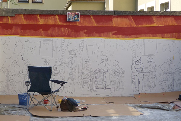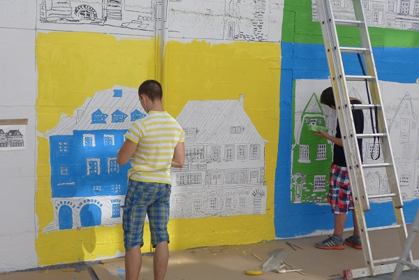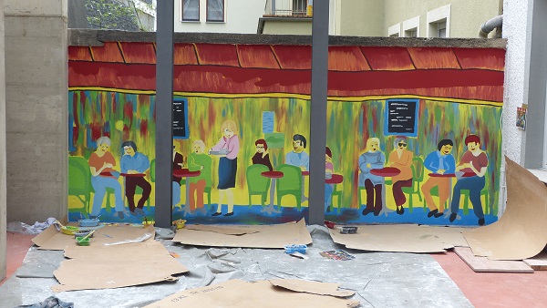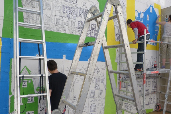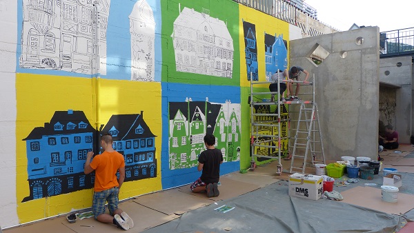 Die Vorschulkinder des Kindergartens Zell Kaimt waren am 7.7. zu Gast in der IGS Zell. Schon seit einem Dreivierteljahr war dieser Besuch geplant. Jetzt, da die Konferenzen für die Abschlussschüler durchgeführt sind, konnte der schon lange ersehnte Tag stattfinden. Die Schülerinnen und Schüler des Wahlpflichtfaches Kunst hatten alles für den Besuch vorbereitet, um die Zaunlatten zu gestalten, und so konnte sofort begonnen werden. Ideen und Anregungen lagen bereit, und schnell fanden sich die Teams zusammen. Die Kinder des Kindergartens entschieden sich erstaunlich rasch, was sie mit ihrem Brett machen wollten, ob ein Mensch, wie z.B. ein Bauarbeiter oder eine Königin oder vielleicht auch Menschen oder Muster im Stile von Friedensreich Hundertwasser gestaltet werden sollte. Die farbenfrohen Muster begeisterten so manches Kind. Nachdem man gemeinsam den Entwurf mit Bleistift fertig hatte, wurde der Umriss mit der Stichsäge ausgesägt. Für viele der Kleinen Künstler war es bestimmt das erste Mal, dass sie ihre Hand an einer Stichsäge hatten. Aber mit der Hand der Großen an der Maschine konnten sie selbst sägen. Mit Schmirgelpapier wurden die Kanten geschliffen. Alle zeigten erstaunlich große Ausdauer und Konzentration bei der Arbeit. Die farbliche Ausgestaltung wurde mit Abtönfarben durchgeführt. Man fand sogar im Fundus des Materialraums den gewünschten Glitzer für die Königin und auch ein ausgedienter Bauhelm wurde angeschraubt. Am Ende des spannenden Vormittags konnte jeder sein Werk im Arm halten. Die Zehntklässler lackierten die Werke, so dass nach dem Wochenende alle Arbeiten im Kindergarten zu sehen waren und bestimmt noch vor den Ferien stolz nach Hause transportiert werden.