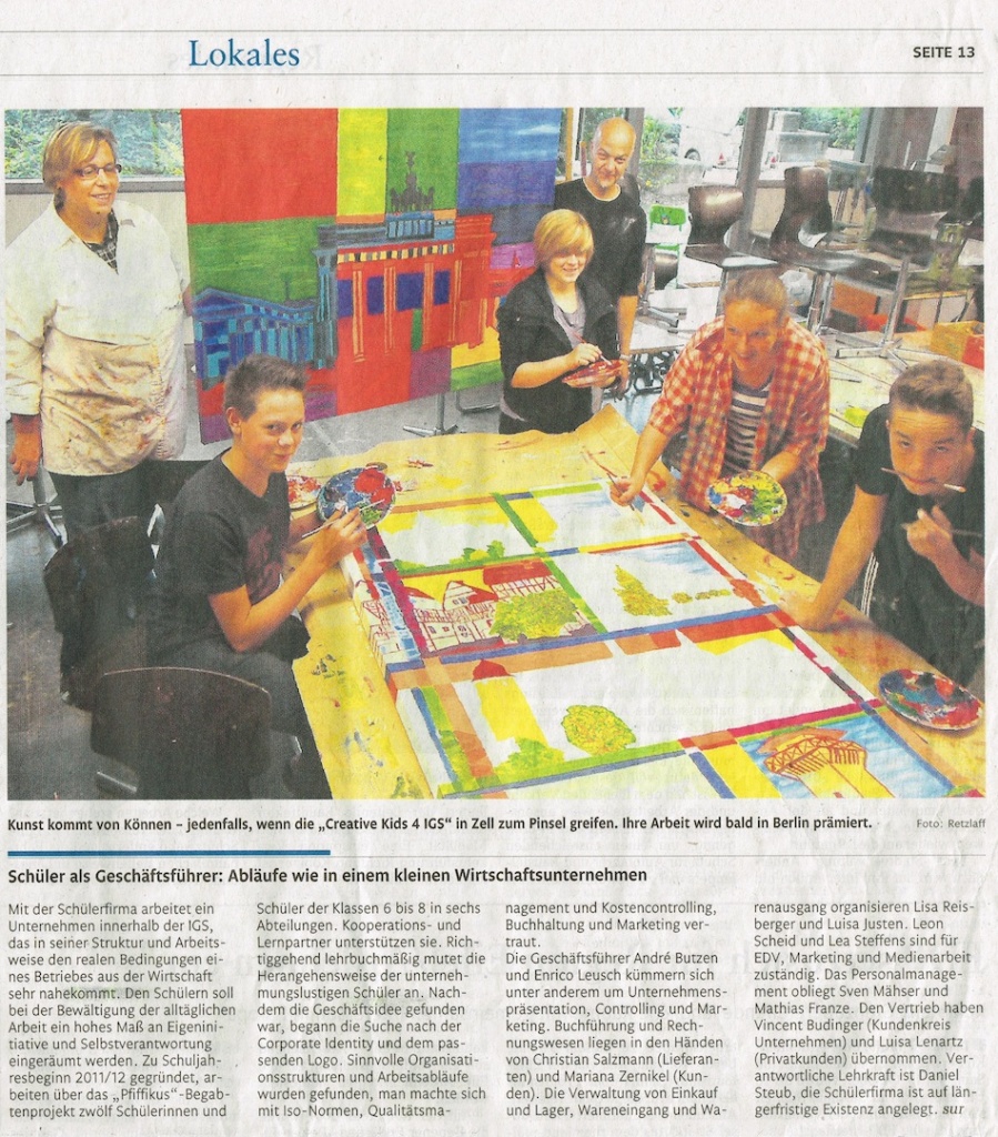 Die Schülerfirma wurde vertreten durch die Schüler/innen Enrico Leusch, André Butzen, Vincent Budinger, Lea Steffens, Leon Scheid, Christian Salzmann, Mathias Franze und darf sich bei Frau Oksana Leusch und Frau Frauke Esser für das große Engagement bedanken.