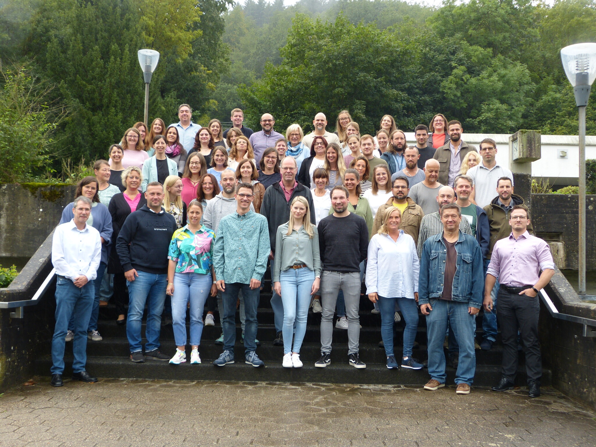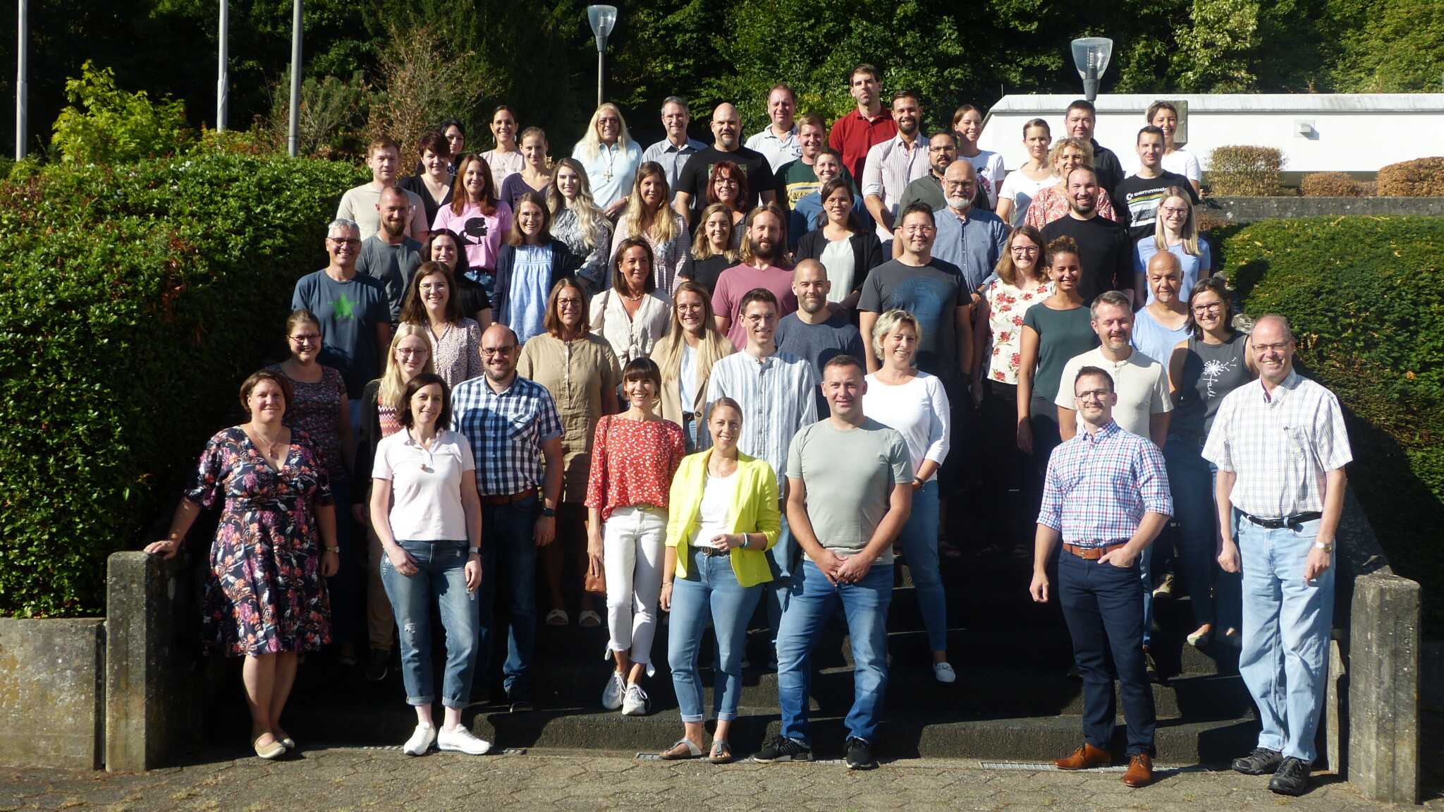 Beim Teamtreffen in den Sommerferien 2009 Hintere Reihe: Frau Koch, Frau Schmitz, Herr Göderz, Frau Schneider, Herr Leusch (Schulleiter), Frau Sabel-Hansen, Frau Langer, Frau Baulig, Frau Peifer, Herr Akin, Herr Adams, Frau Lespegagne (FSJ); Nicht abgebildet sind Frau Daum-Wies, die an dem Tag des Fotos verhindert war und Herr Adolf, der erst am 1. Februar als Kollege zu uns gekommen ist. Vordere Reihe: Frau Turayeva (FSJ), Frau Peitz, Frau Trost, Frau Wirtz, Frau Peifer, Frau Schneider, Herr Richerzhagen