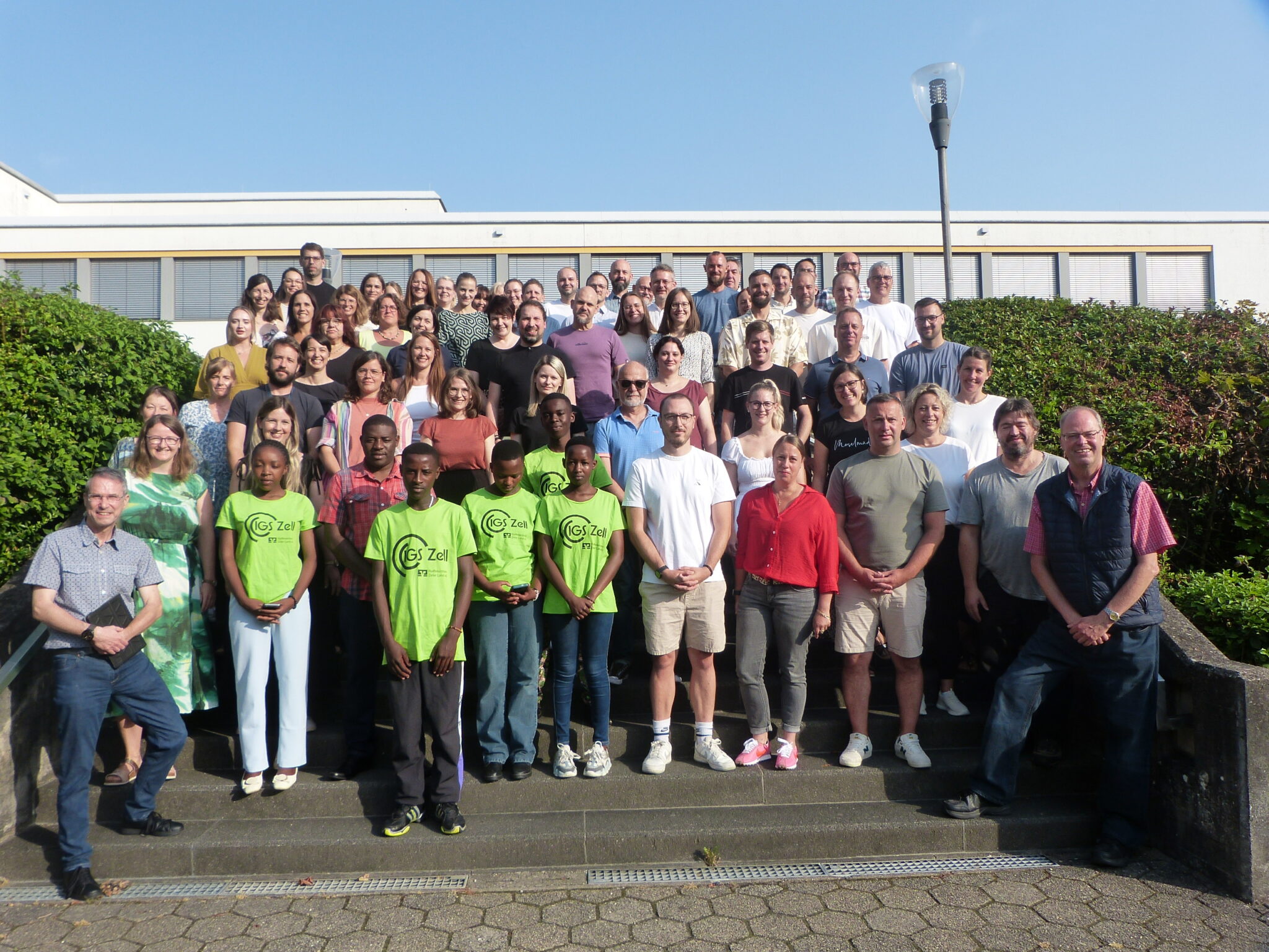Lehrerkollegium 2025/26 mit Lehrern und Schülern der Partnerschule aus Ruanda